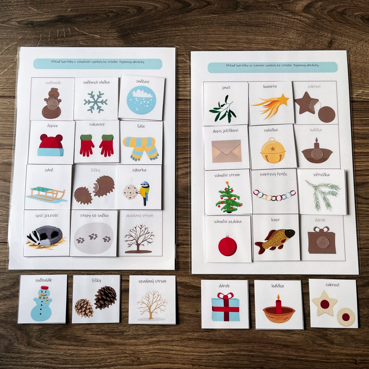 • kartičky se zimními motivy – přiřazení ke stínům, slovní zásoba na téma zima