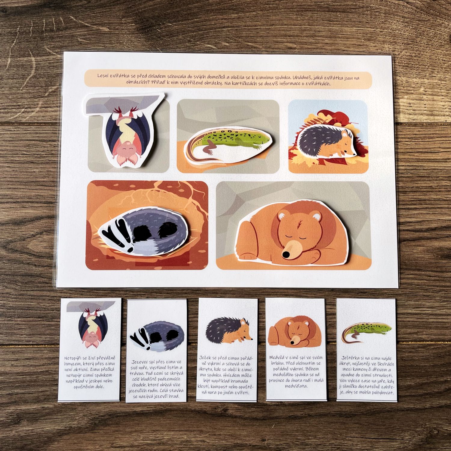 • zimní zvířátka – děti roztřídí zvířátka na ty, které se ukládají k zimnímu spánku a ty, která jsou aktivní, na kartičkách jsou doplňující  informace o zvířatech