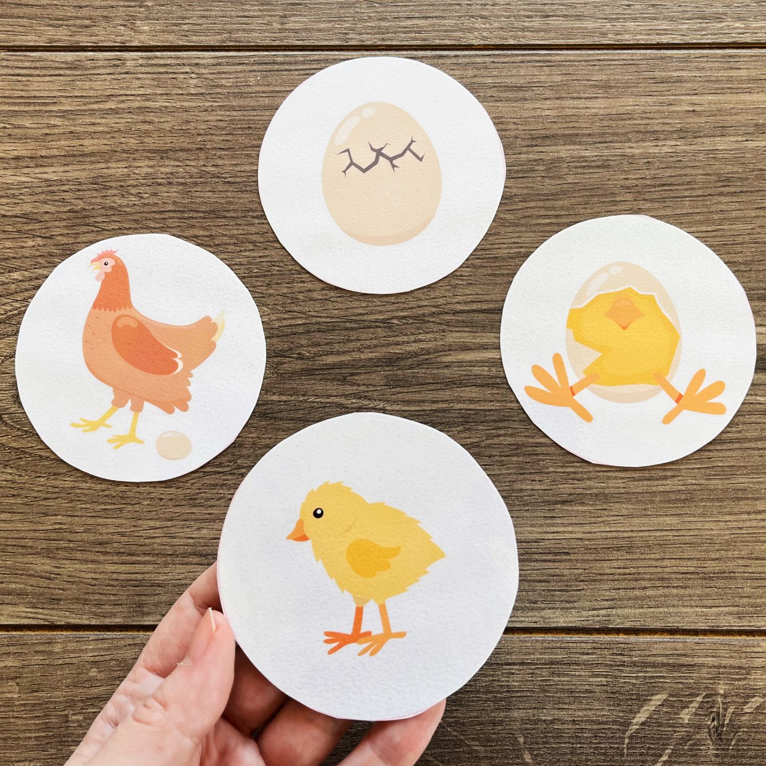 • cyklus vývoje kuřete – řazení kartiček ve správném pořadí, pochopení cyklu vývoje, rozvoj komunikačních dovedností