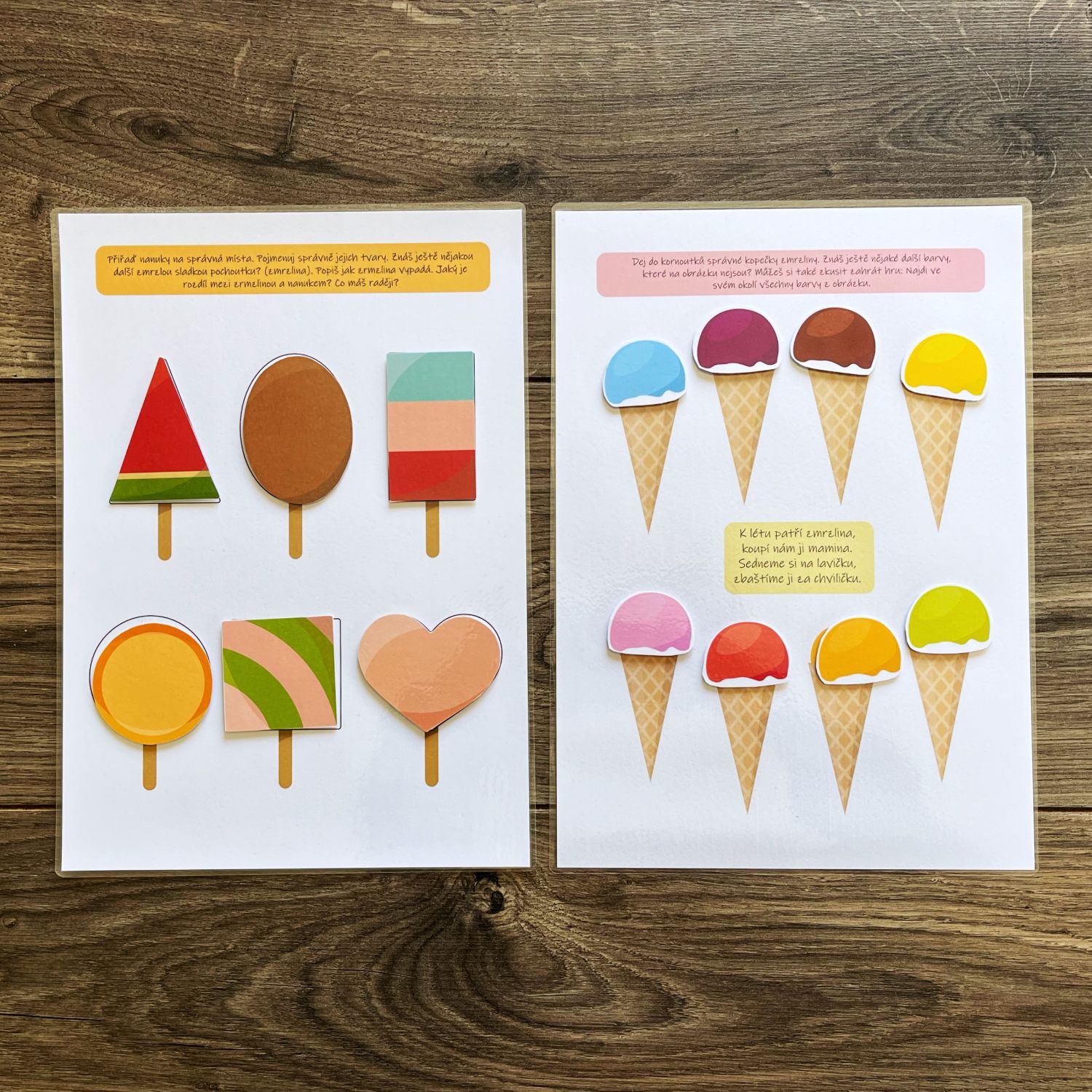 • kartičky s letními motivy – Děti si hravou formou procvičí nabytou slovní zásobu. Úkolem je najít a přiřadit k sobě patřící poloviny obrázků. Když kartičky otočíme lícem dolů, lze si s nimi zahrát i pexeso.